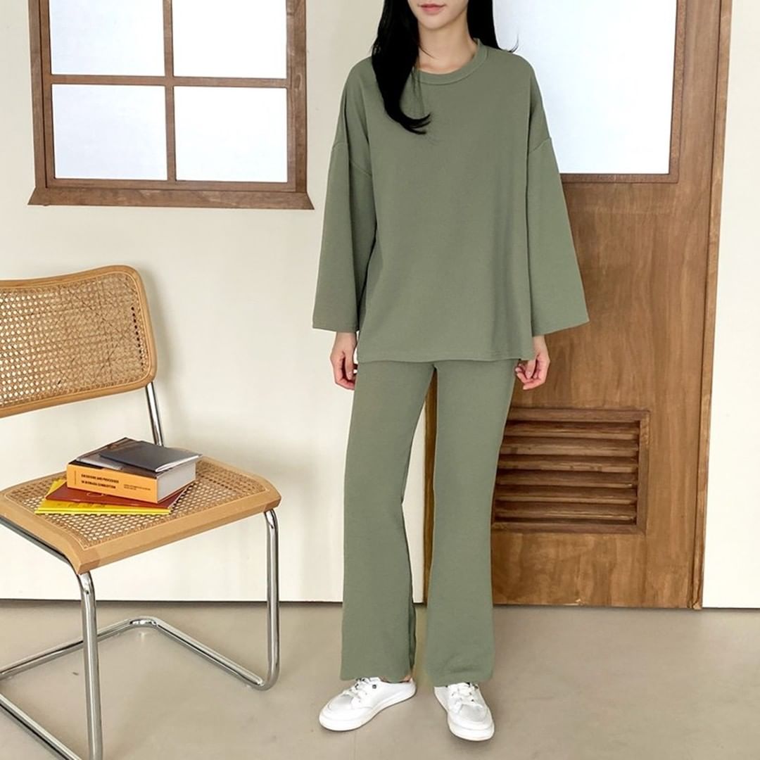 - 상품명: 무지 빅사이즈 긴팔티셔츠 부츠컷 팬츠 등원룩 상하 투피스 세트