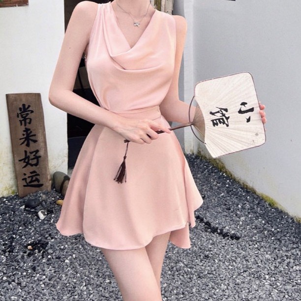 동양 특유의 고풍스러운 분위기를 풍기는 치파오 디자인의 투피스 세트입니다✨