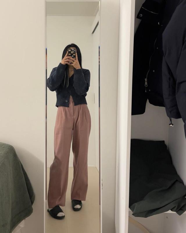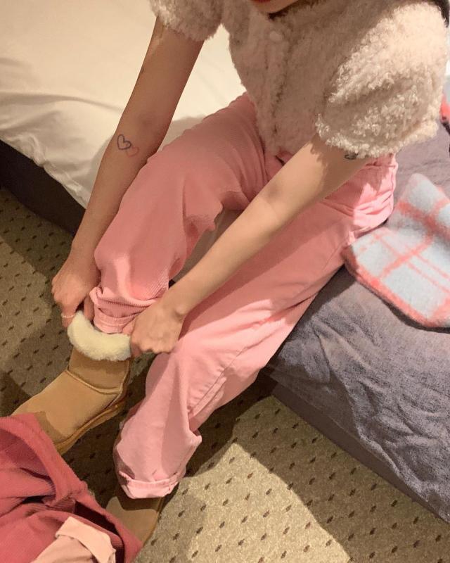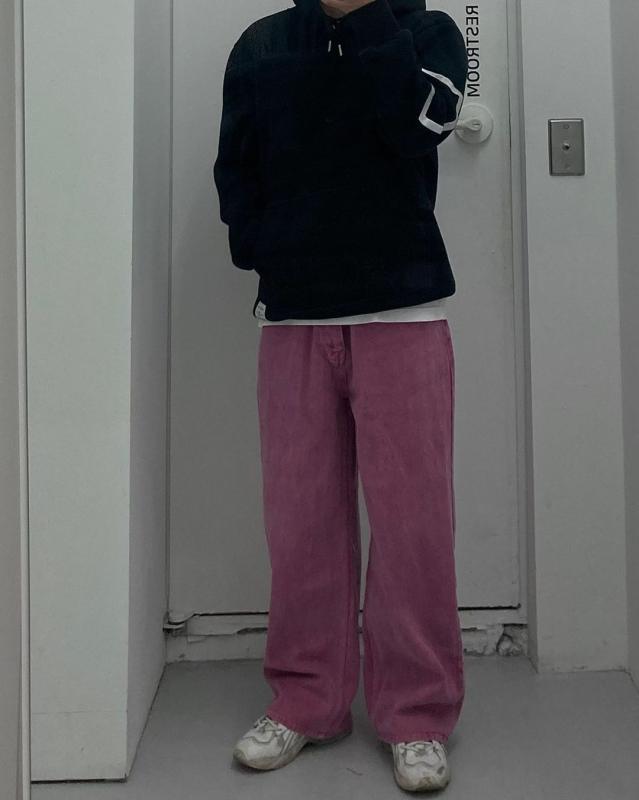 오늘은 핑크색 피그먼트 팬츠입니다🫣