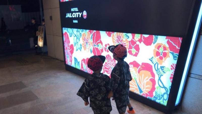 숙소 도착해서 저녁먹고 낮에 쇼핑했던 애들 옷으로 갈아입혀서 나왔어요 ㅎㅎ 내년에도 입어야하니깐 둘다 130으로샀는데 얼추 맞네^^ 3일차 와니워니네 우리가족 오키나와 여행일기 아들둘 형제 가족여행 마지막밤 호텔잘씨티 jalcitynaha 트윈룩