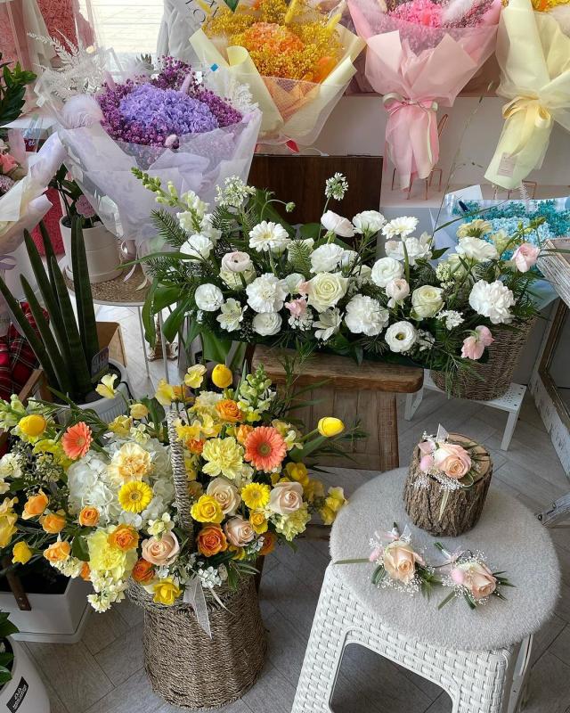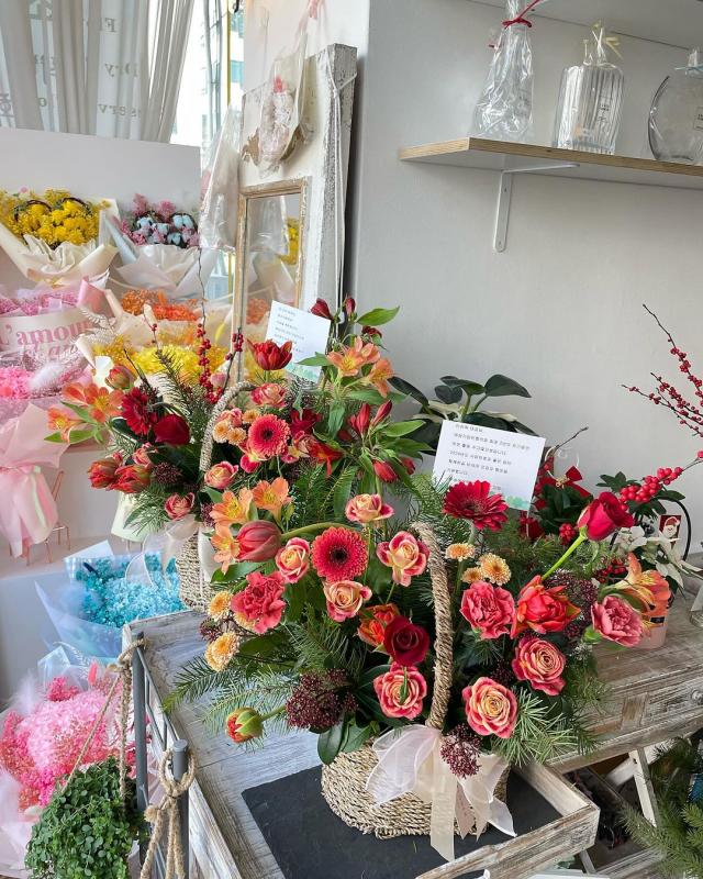 지난 피드 올려봐요 광명 세무서에서 예약주신 센터피스 와 라지 사이즈 바구니 그리고 코사지 세트로 올려봐요.