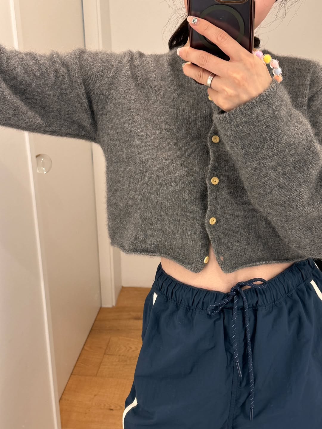 특히 이 독보적인 차콜 카키 컬러가 마음에 쏙 들었어. 흔하지 않으면서도 고급스러운 느낌을 줘서 어떤 옷에 받쳐 입어도 분위기를 확 살려주는 마법 같은 아이템이랄까? ✨