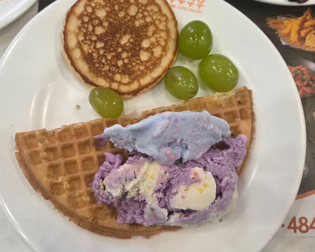 아, 그리고 갓 나온 따뜻한 크로플이나 와플에 아이스크림 듬뿍 올려 먹는 것도 꿀맛 보장! 🧇